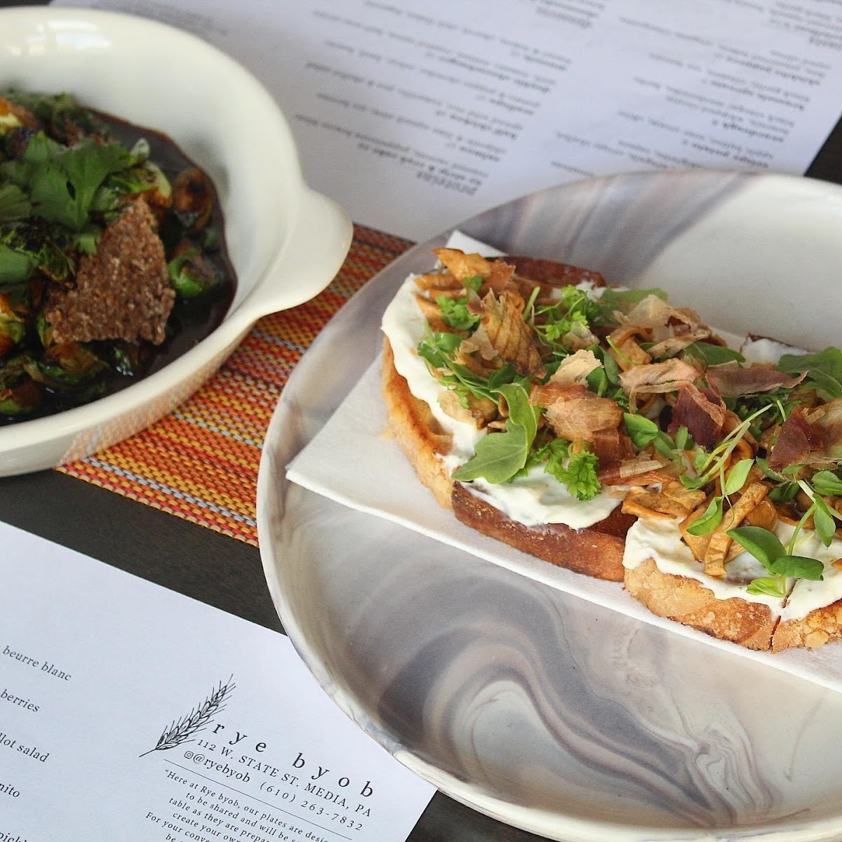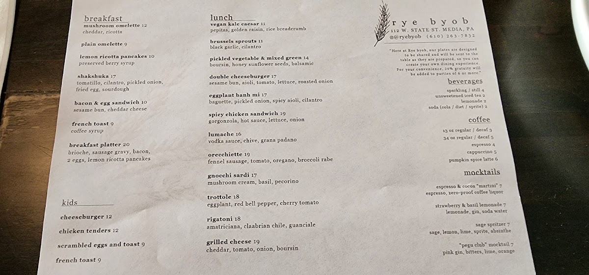 Introducing Rye Byob, a gem nestled in Media, PA, renowned for its eclectic menu that showcases seasonal, fresh ingredients. The dinner selection impresses with options like the perfectly cooked Salmon accompanied by whipped potatoes and black garlic broccoli, and a mouthwatering Cheeseburger featuring aioli and roasted onion. The lunch menu delights with sandwiches like the spicy Chicken Sandwich and an inventive Eggplant Banh Mi.